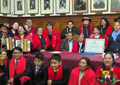 Participaron en la ceremonia la Decana Nacional del CPHP, Lic. Raquel Aragón Mamani, y el Decano Departamental de la sede Cusco, Lic. Ronald Camala Valenzuela, quienes destacaron el valor histórico, cultural y espiritual que representa la música y el canto de las ch’ayñas dentro de las tradiciones del Cusco.